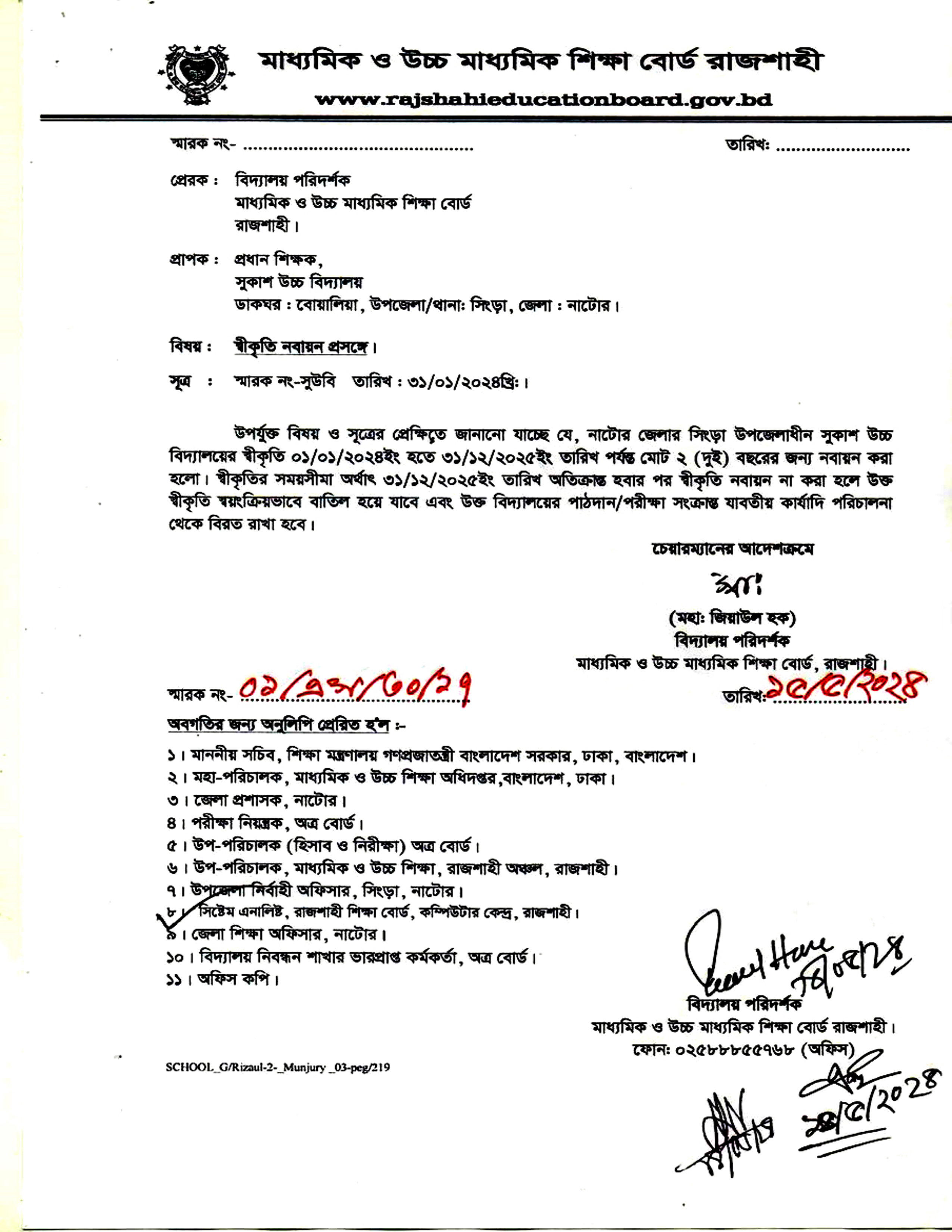 নবায়ন ০১/০১/২০২৪ হতে ৩১/১২/২০২৫ পর্যন্ত